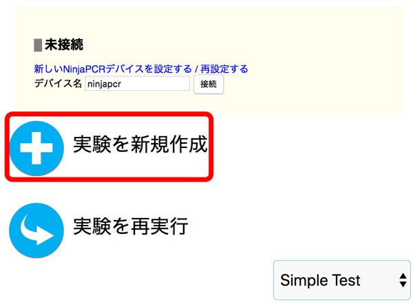 プロファイル画面を開きます。「+」アイコンを押してその場で新しいプロファイルを作るか、プルダウンメニューから既存のプロファイルを選んで「実験を再実行」ボタンを押し、実験を開始します。